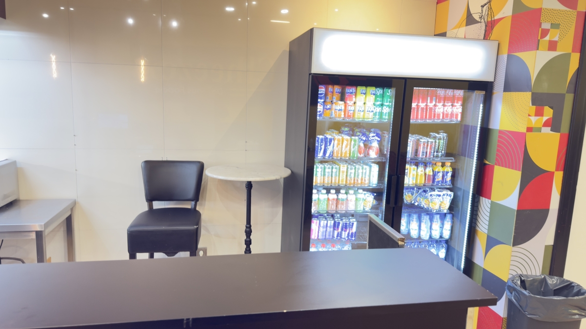 Binnen zijn drie splinternieuwe LG-schermen (55 inch) aanwezig: